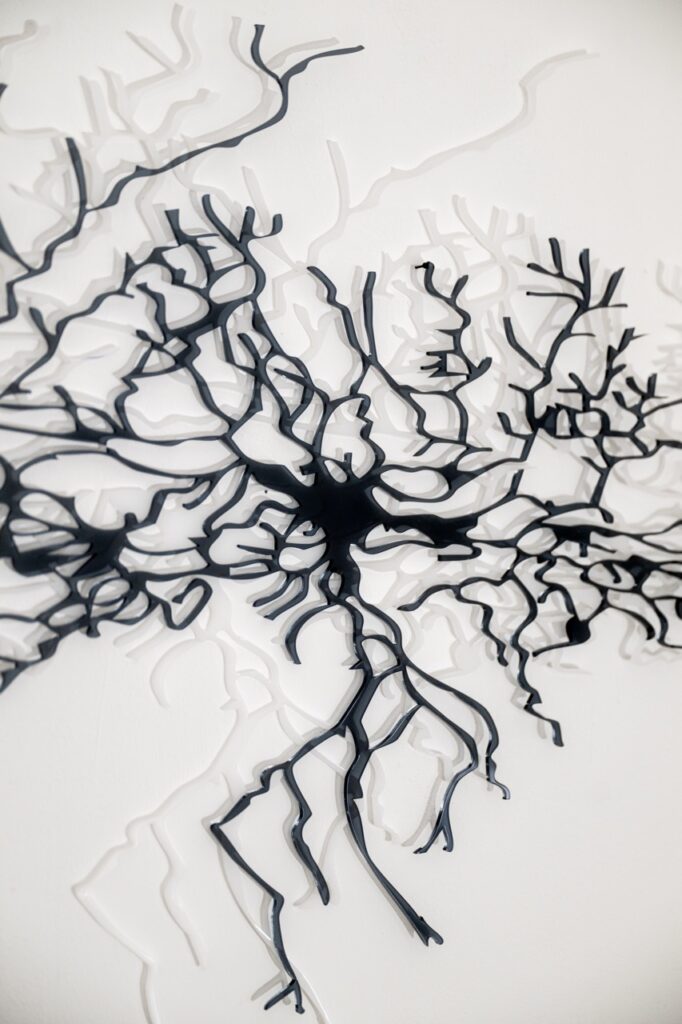 One of the key works was the so-called fluvial map, created from vectors of Slovak rivers. It was disassembled and reassembled in such a way that it resembled a water network, a vein system and root structures at the same time. A rhizome was created in which the body of the land and the bodies of living organisms could no longer be separated.